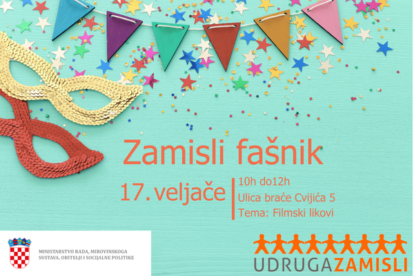 ZAMISLI fašnik bit će tematski posvećen likovima iz filmova. Pridruži nam se i oživi u sebi omiljenog junaka s malih ekrana. Čekaju te i zanimljive aktivnosti.